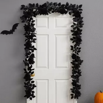 Black Halloween Rose Vine Garland with Realistic Artificial Flowers 69in